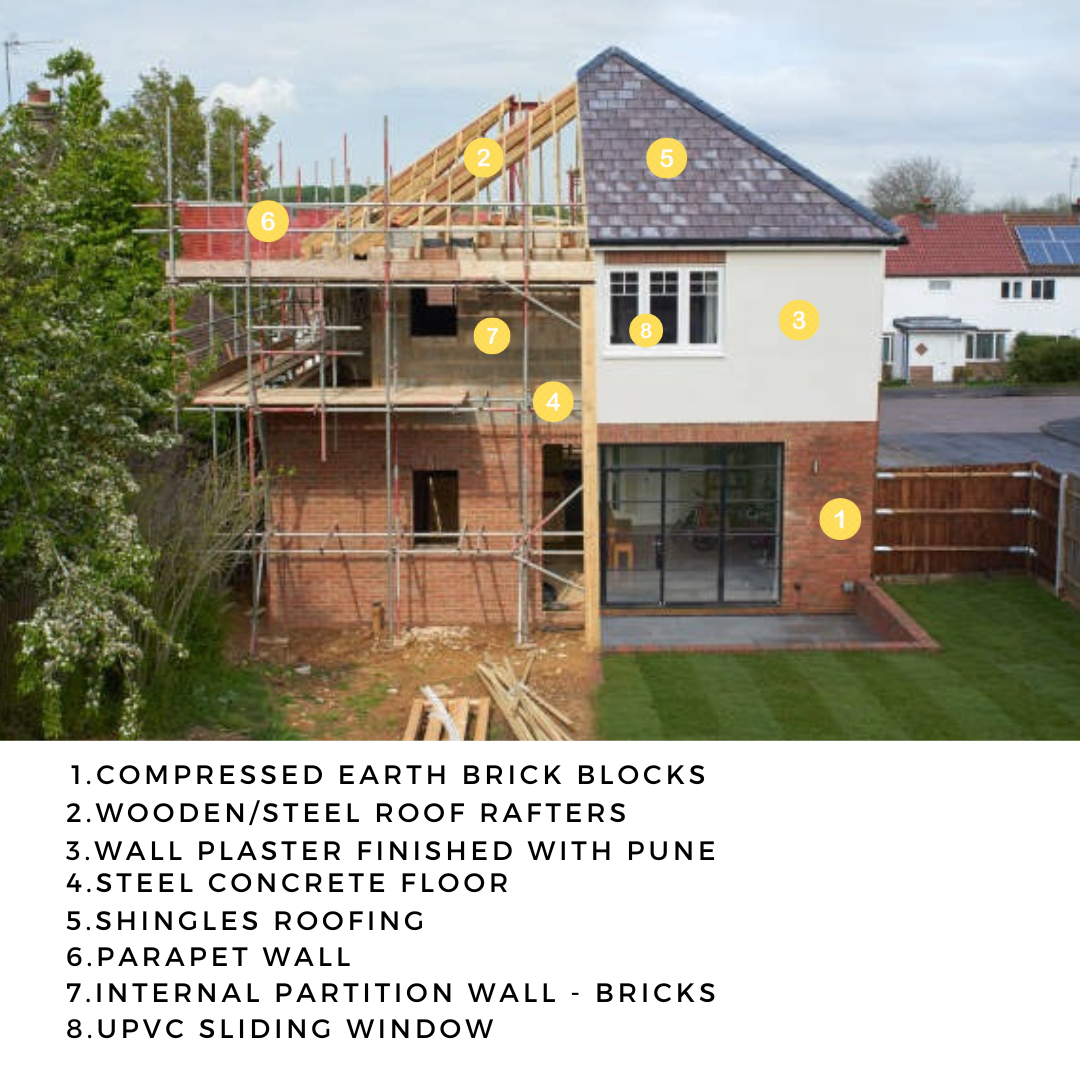SSBH stands for Sustainable Stone and Brick Homes. Developed by Nishtha Essentials LLP, this housing solution emphasizes energy efficiency and minimal environmental impact using brick and stone. Some of the strategies implemented are - use of lime plaster instead of concrete and replacement of regular mortar with hydraulic lime or lime mortar.